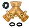 Morvat Heavy Duty Brass 2 way Y Splitter Garden Hose Connector with Comfortable Grip Shut Off Valves, Adapter for Water Tap, Outlet, and Spigot, Includes 2 Extra Rubber Washers and Teflon Tape